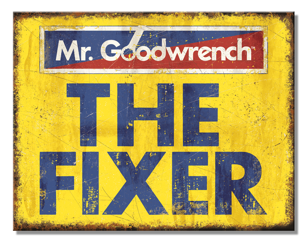 16" X 12 1/2" MR GOODWRENCH THE FIXER METAL SIGN NEW