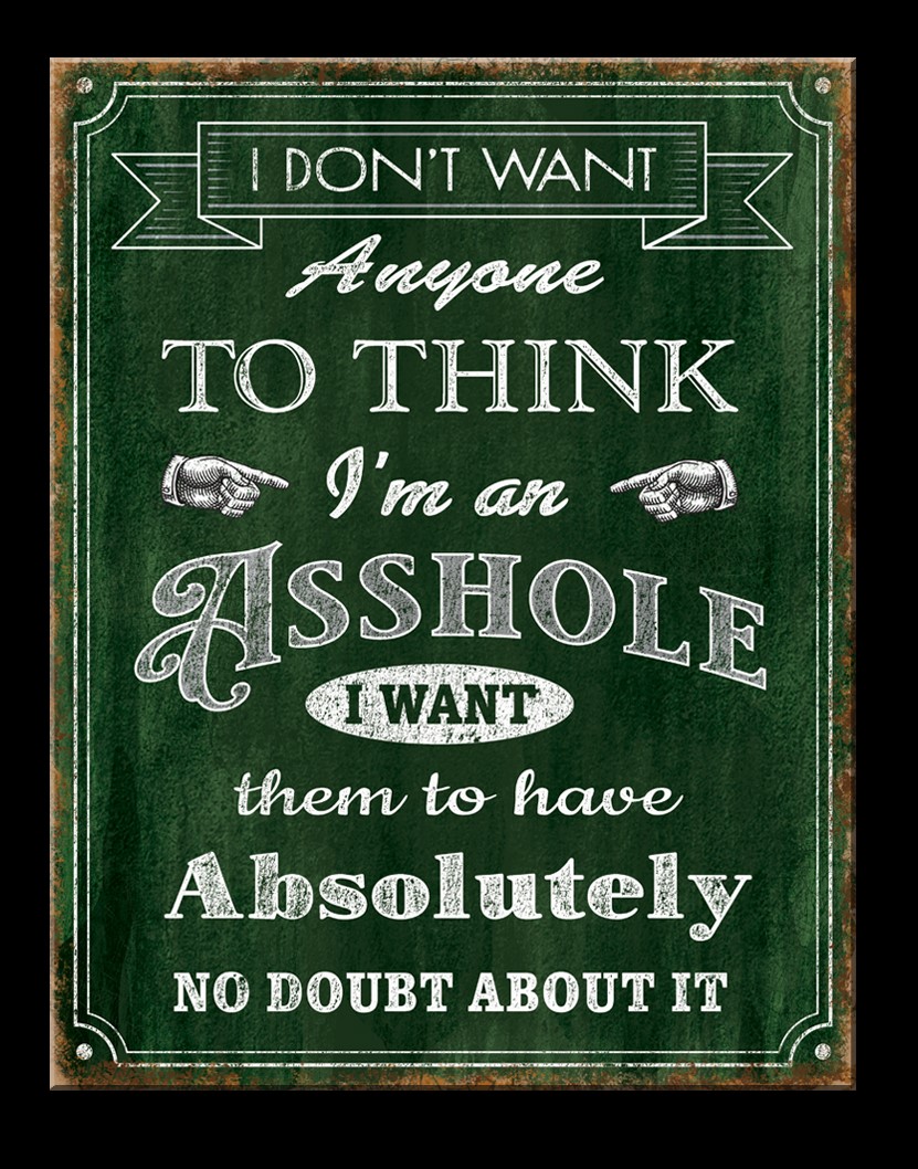 16″ X 12 1/2″ TIN SIGN I DO’T WANT ANYONE TO THINK I’M AN A**HOLE METAL SIGN NEW