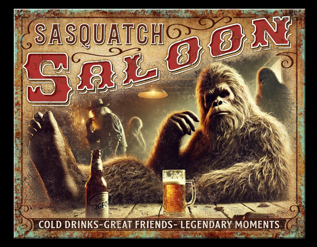 16″ X 12 1/2″ TIN SIGN SASQUATCH SALOON COLD DRINKS GREAT FRIENDS METAL SIGN NEW